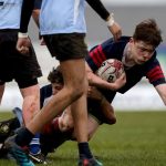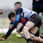 Aengus Martin’s side started the brighter. With the aid of a strong wind, “The Boys in Blue” looked to gain an early advantage. Following a scrum near halfway, Scrum-half Oisín Cregg found Cathal Feely, whose grubber kick was chased and finished by winger Josh Cronin. Dáire Cregg’s resulting conversion fell just short afterwards.