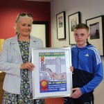 Aileen Madden welcomed the school competition winners Anna Mc Grath (Grange NS) and Brona Mulrennan (Scoil na nAingeal Naofa, Boyle) who designed the catalogue cover and Liam Mc Keon (Abbey CC) who designed the poster.