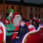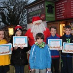 The five students were winners of a recent colouring competition organised by Boyle Chamber of Commerce and Boyle Christmas Lights Committee and they accompanied Santa on his sleigh before helping him turn on the Christmas lights.