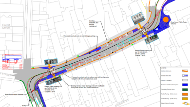 On Elphin Street, there will be changes to the junction opposite Trojan as one heads to and from the Train Station. But one has to question the danger in having to travel towards Greatmeadow and turn right to access the train station (as the slip road will be one way), that is unless there is some plans to upgrade this junction at a later stage. At the best of times, this is a blind hill.